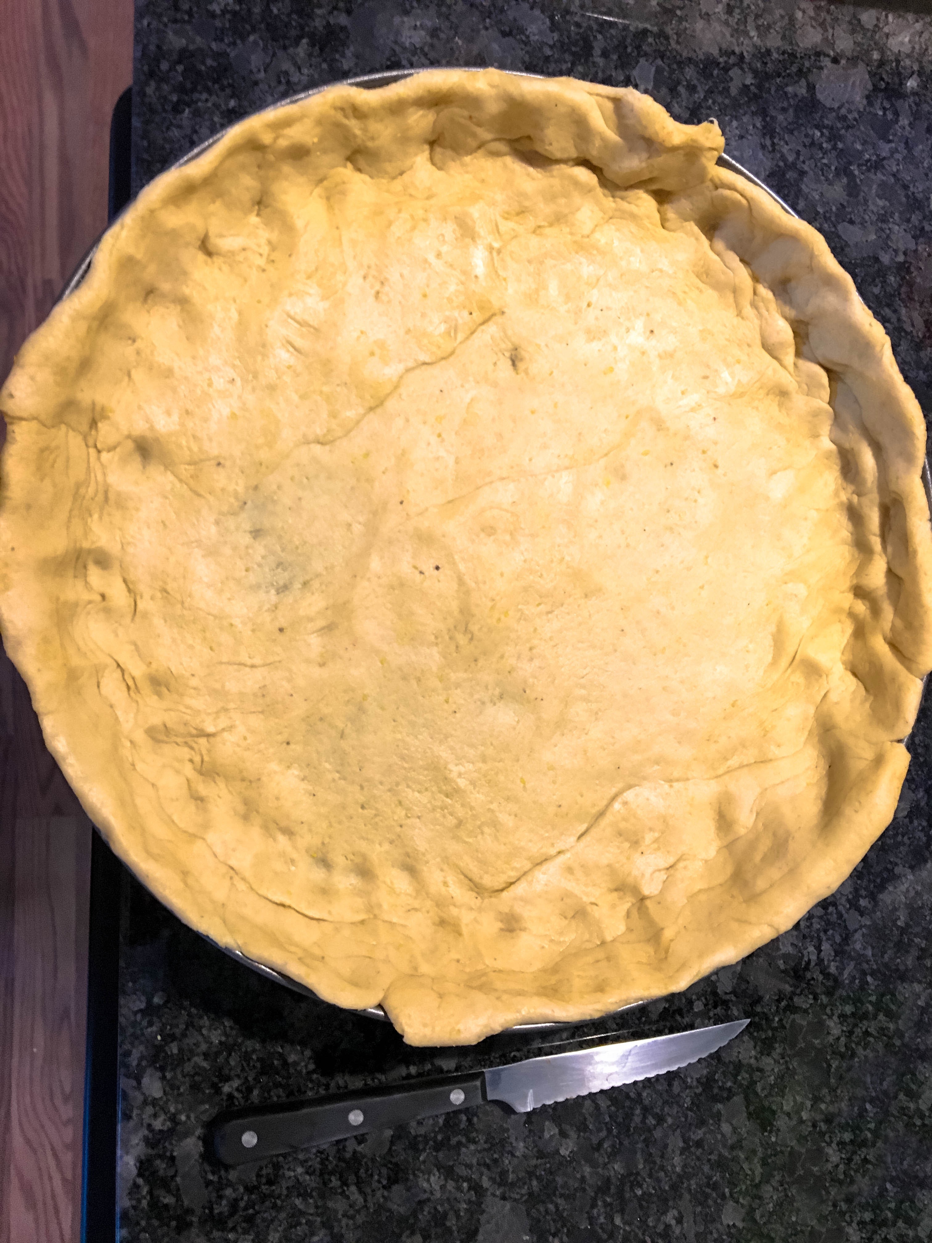 Spread crust to edge of pan and cover for 30 minutes.