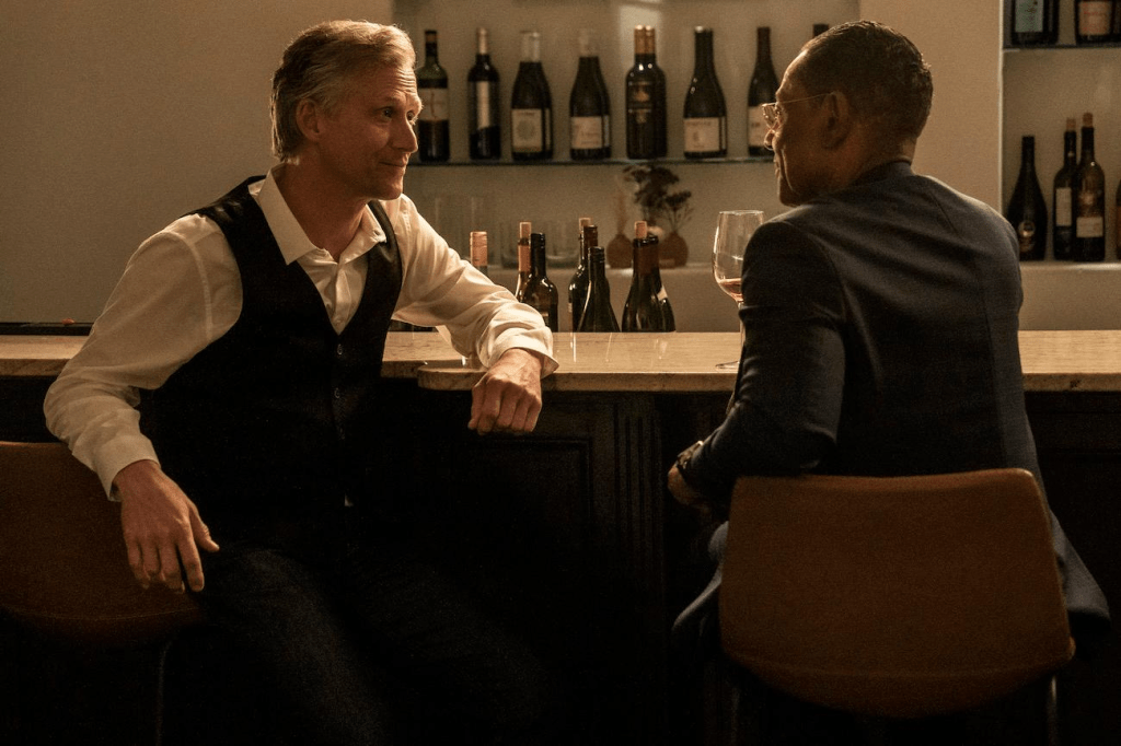 However, at the end of Gus and David’s shared moment, Gus, after a quick smile and last sip of wine, remembers his desire to avenge former lover/business partner Max, and excuses himself without saying goodbye.