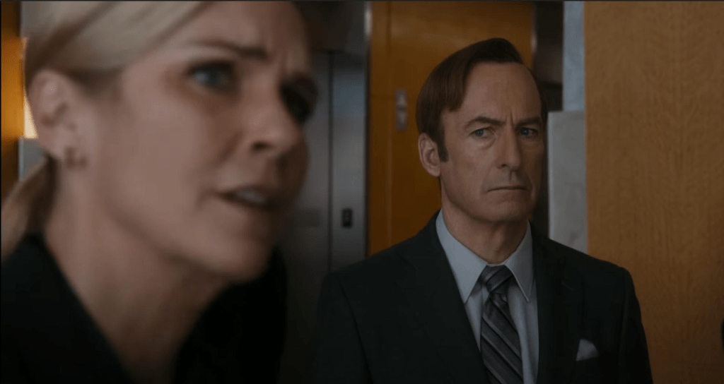 - The door theme seems to be prevalent again in this episode – Gus closing the bunker door on Mike and being framed by a door as he leaves David were pertinent and most of Jimmy and Kim’s breakup scene were framed by doors
